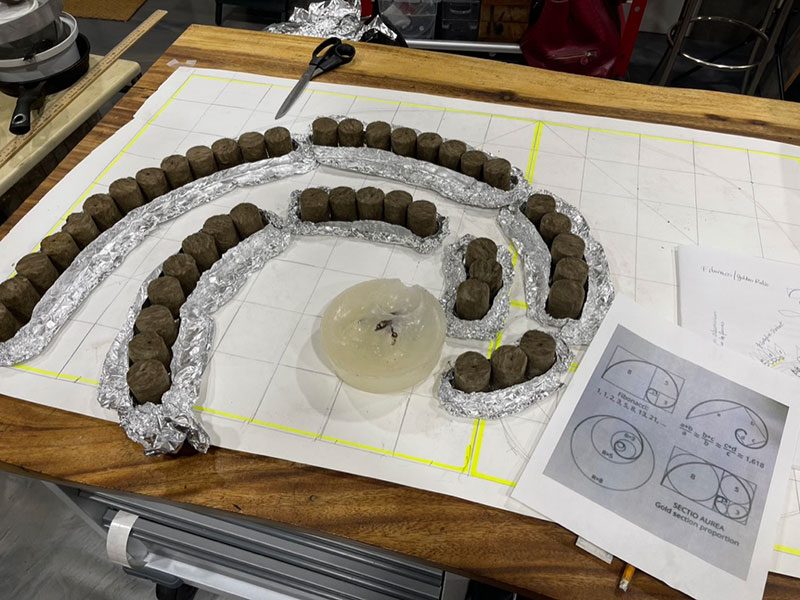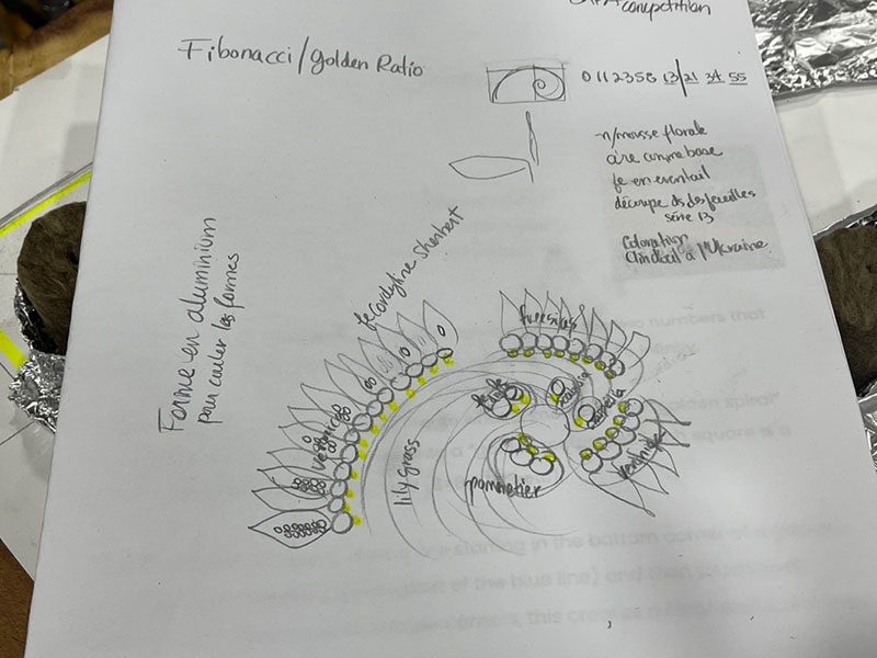 La composition que j’ai créée reproduit de manière parfaite la courbe de la séquence Fibonacci. Pour contribuer à l’effet visuel, j’ai choisi une variété différente pour chaque nombre.