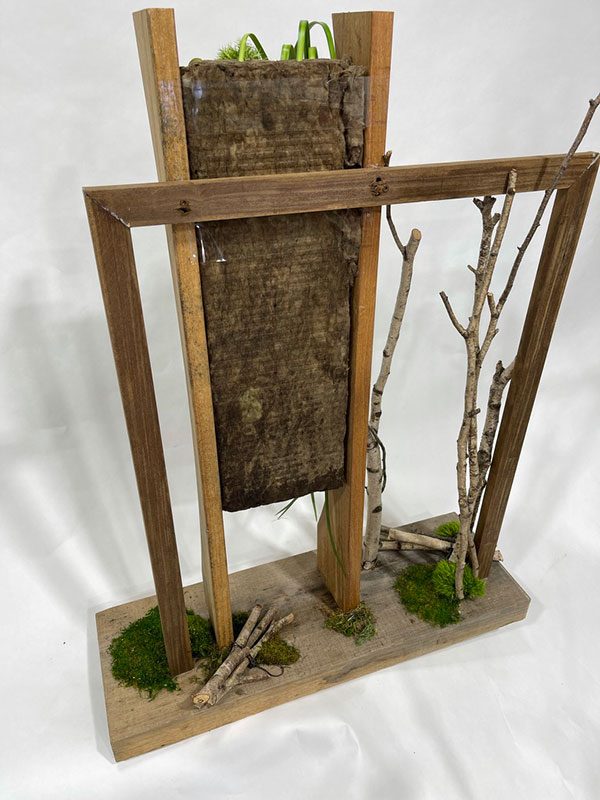 La mousse florale Bio à la verticale ne retient aucun surplus d’eau.