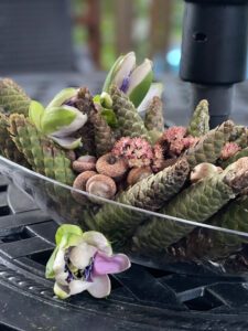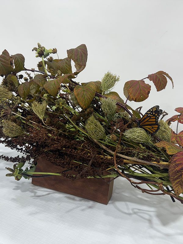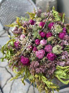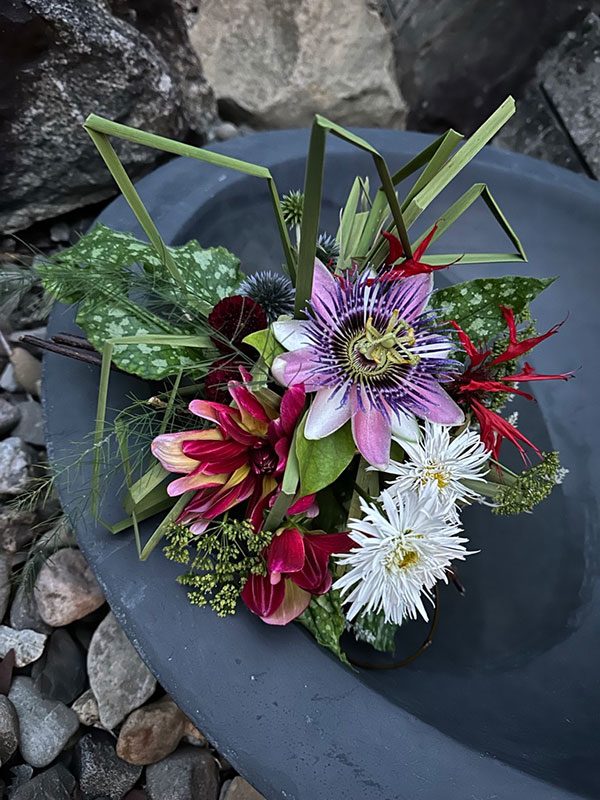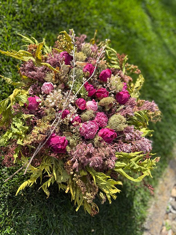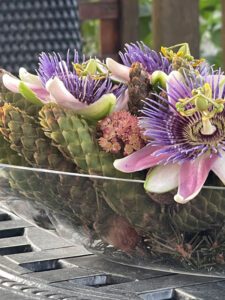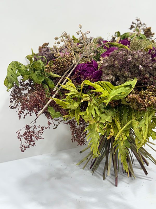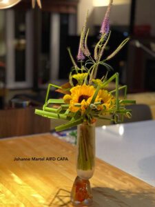Ma démarche en est une de réflexion sur proposer et offrir autrement. Ma pensée s’est aventurée, avec succès, à donner plus de sens encore à l’élément floral de circonstance. Ainsi pour chacun des exemples présentés, la description est très importante. C’est par elle, que passe le début de l’histoire et prend tout son sens. Elles ont toutes été créés en collaboration avec une personne très proche de la personne décédée. Pour ceux et celles étant très proche, celle-ci est évidente et pour les autres devient porteuse de sens.