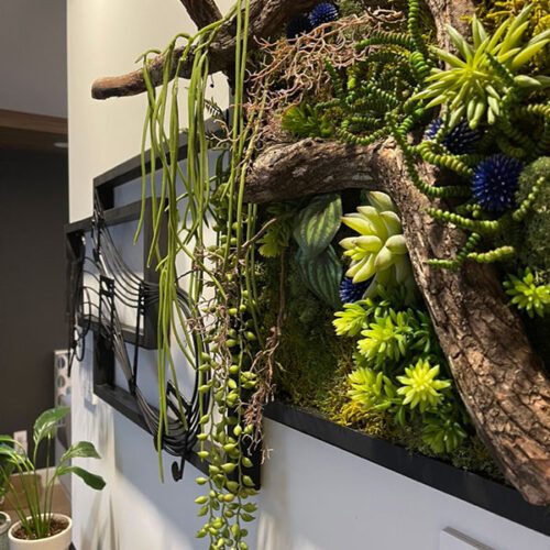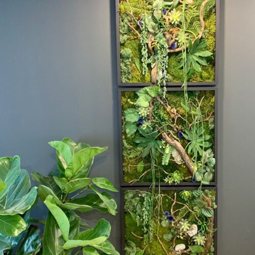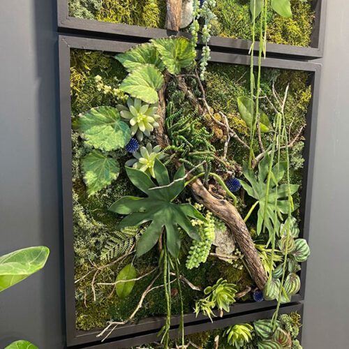 La cliente a fait appel à un designer d’intérieur pour son nouvel environnement. Celui-ci lui a suggéré d’intégrer des cadres végétales.