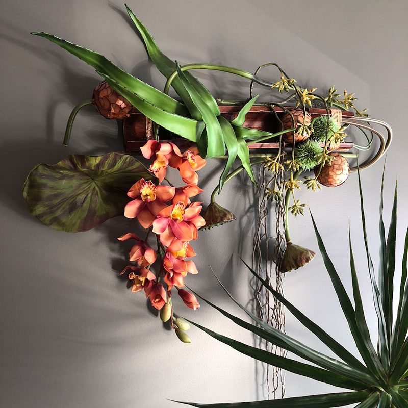 Beaucoup de collage avec de la colle chaude. À cette époque certaines compositions avaient comme élément départ un bloc de mousse florale collé sur une plaque en carton rigide.