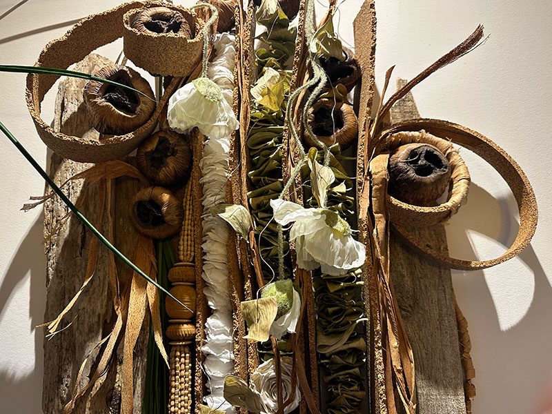 À d’autres moments on a créé pour démontrer quelque chose. Il faut défaire et cela permet de réutiliser ces matériaux. Ici, les bandes de lièges.